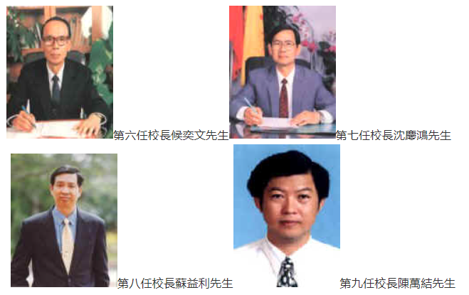 - 民國八十三年二月一日侯奕文校長奉准退休,沈慶鴻先生接任第七任校長。。