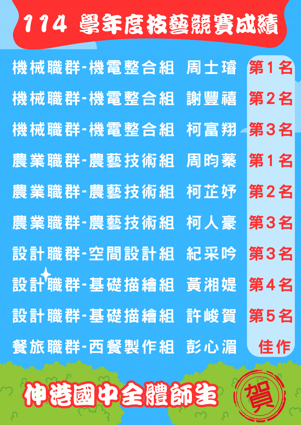 榮譽榜 / 張貼者 輔導組長